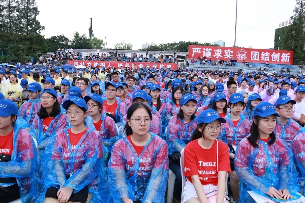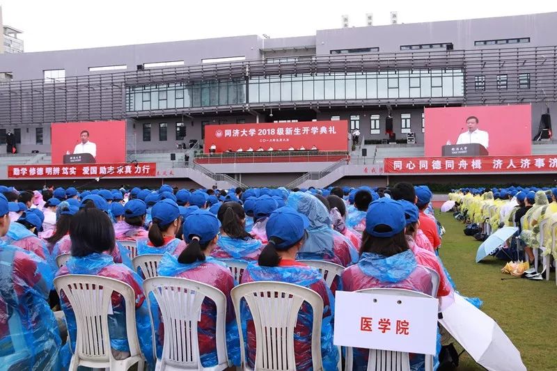 一切都紧张有序的进行着,9月8日上午,2018级新生开学典礼在四平路校区一二九运动场举行。会场上,悬挂着印有“严谨 求实 团结 创新”“勤学 修德 明辨 笃实”“爱国 励志 求真 力行”红底白字的横幅。身穿红色院服的医员工们坐在运动场上,开始了他们人生的新征程。