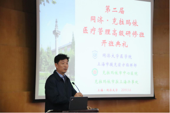 5月6日上午,根据上海市对口支援克拉玛依市医疗卫生机构培训项目计划,第二届同济·克拉玛依医疗管理高级研修班在ylzzcom永利总站线路检测二楼报告厅举行开班典礼。本次高研班的50名学员,均是来自于克拉玛依市各医疗机构的中层管理干部。